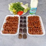 90 gr. çiğ köfte, tek lavaş, Doritos taco, 5 çeşit garnitür, 3 çeşit sos